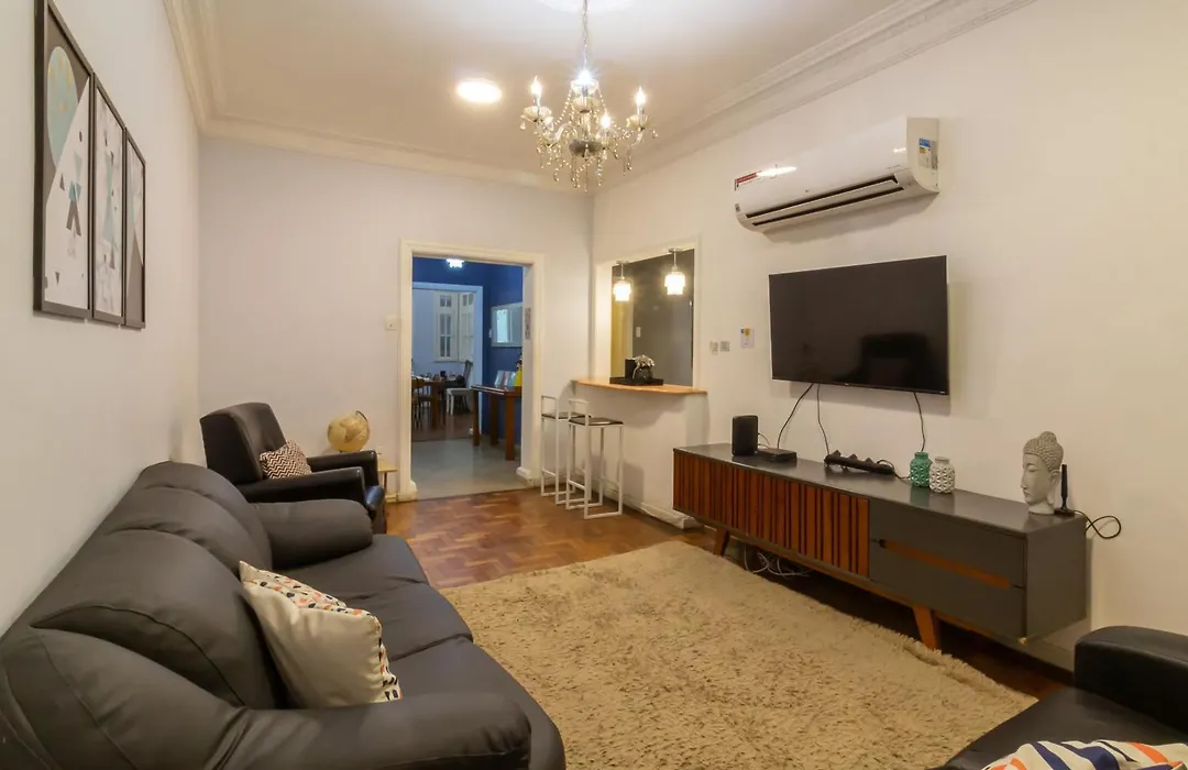 A Copacabana körzetben és a Shopping Cassino Atlântico területétől 5 perc sétára elhelyezkedő, 170 m²-es Cavirio - Avenida Atlantica apartman 8 vendég elszállásolására alkalmas. Ez a 3 hálószobás ingatlan továbbá tartalmaz egy konyhát és 3 fürdőszobát.